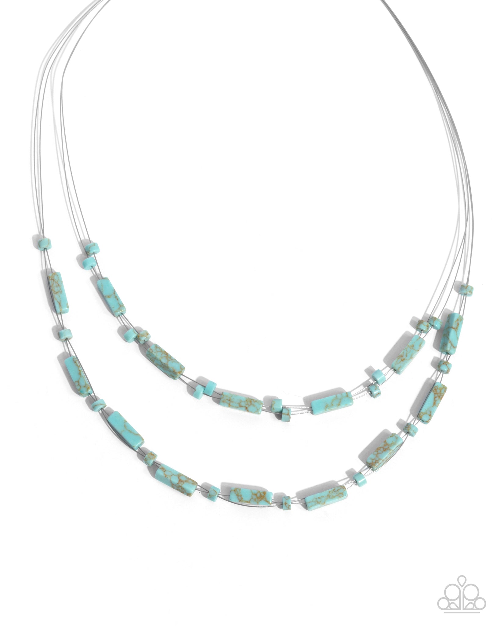 Infused along dainty twisted silver wires, a collection of turquoise stone discs and cylindrical pieces cascade below the neckline in earthy layers for an eye-catching display. Features an adjustable clasp closure. As the stone elements in this piece are natural, some color variation is normal.