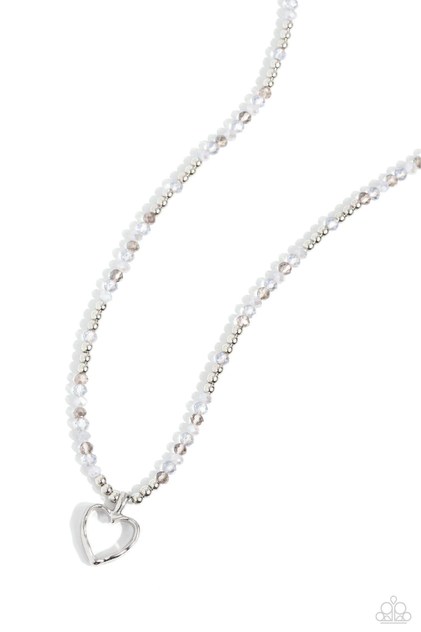 Infused along an invisible chain, a fashionable collection of beads in various sheens and shades of silver combine with silver accents as they coalesce below the neckline. Meeting at the center of the flashy display, an abstract silver heart silhouette finishes off the design with a charming flourish. Features an adjustable clasp closure.