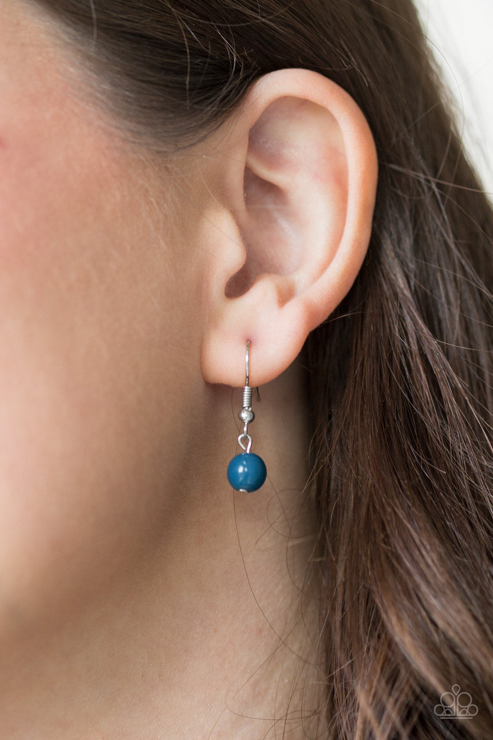 Infused with a lengthened silver chain, a polished blue bead is pressed into the center of a flared silver pendant for a bold tribal flair. Features an adjustable clasp closure.