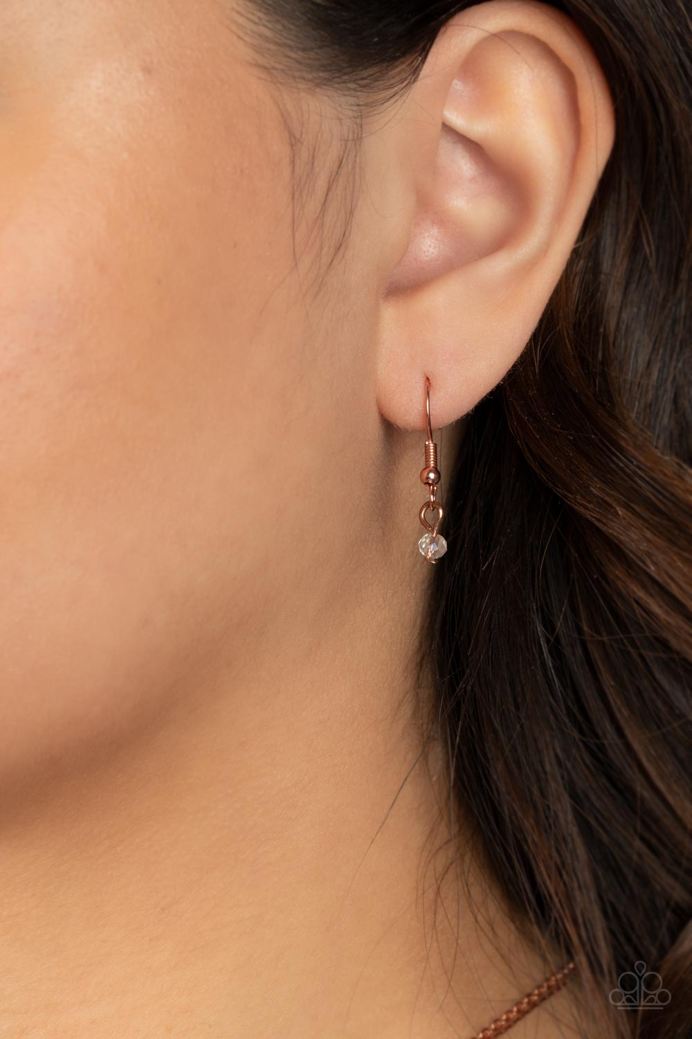 Dotted with a single shiny copper stud, a star-stamped shiny copper disc glistens at the bottom of a classic shiny copper chain. Infused with faceted copper beads, a stellar collection of clear crystal-like beads glides along a flat copper chain, resulting in out-of-this-world layers below the collar. Features an adjustable clasp closure.