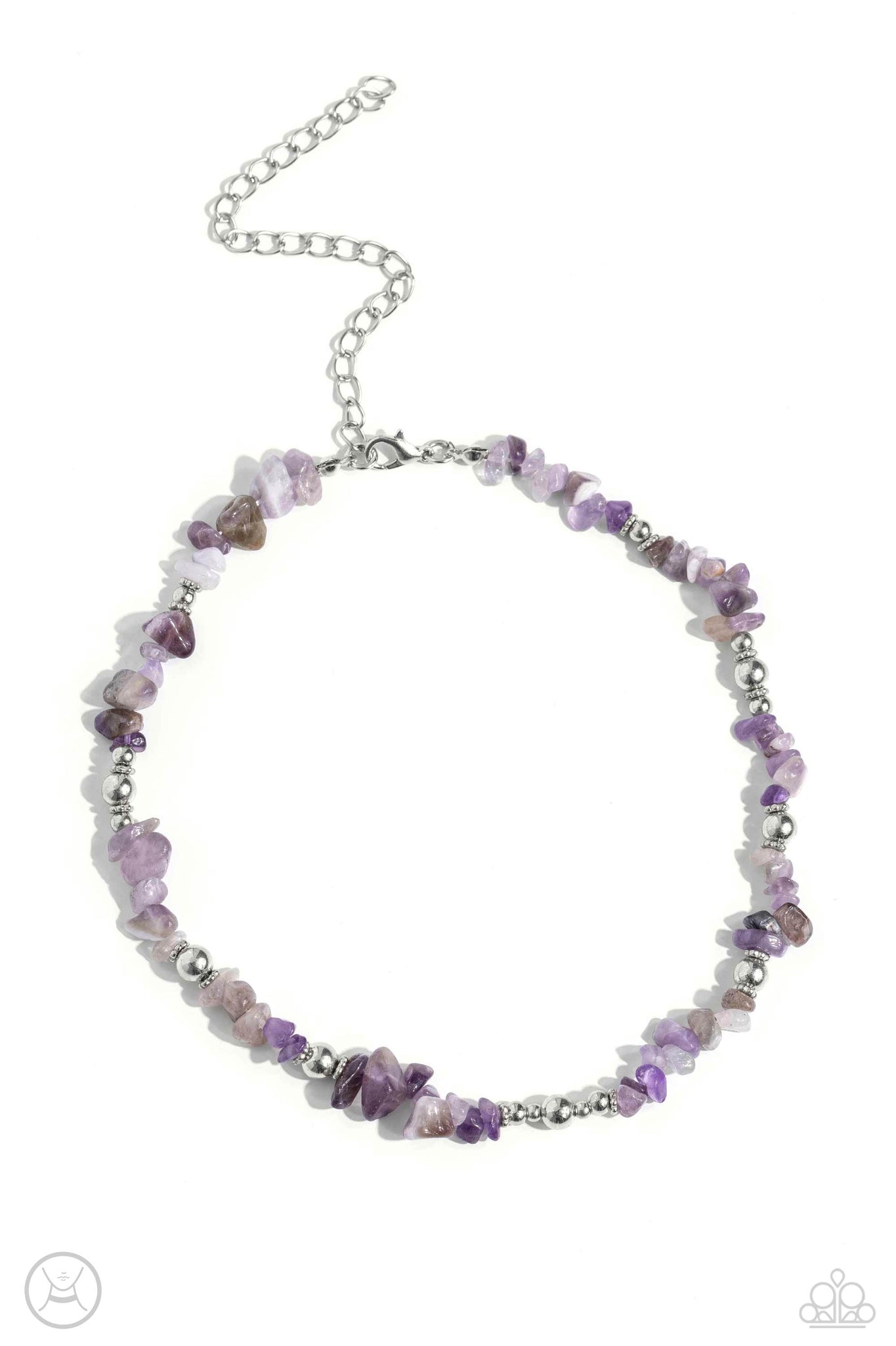 Infused along an invisible string, a chiseled collection of amethyst stones and various silver beads wrap around the collar for an earthy pop of color. Features an adjustable clasp closure. As the stone elements in this piece are natural, some color variation is normal.