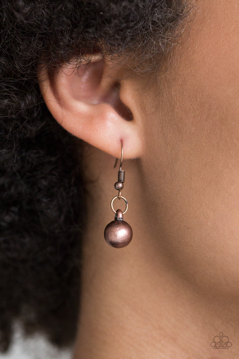 Glistening copper chains stream from the bottom of shimmery copper beads, creating an edgy industrial fringe below the collar. Features an adjustable clasp closure.