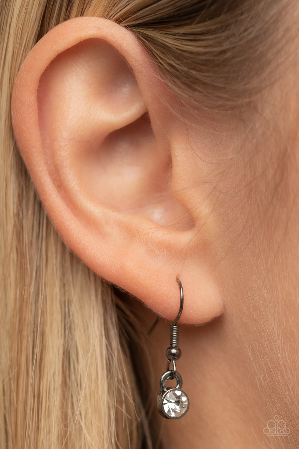 Oversized smoky gems alternate with matching gems bordered in rings of glassy white rhinestones below the collar, resulting in a spellbinding sparkle at the bottom of a classic gunmetal chain. Features an adjustable clasp closure.