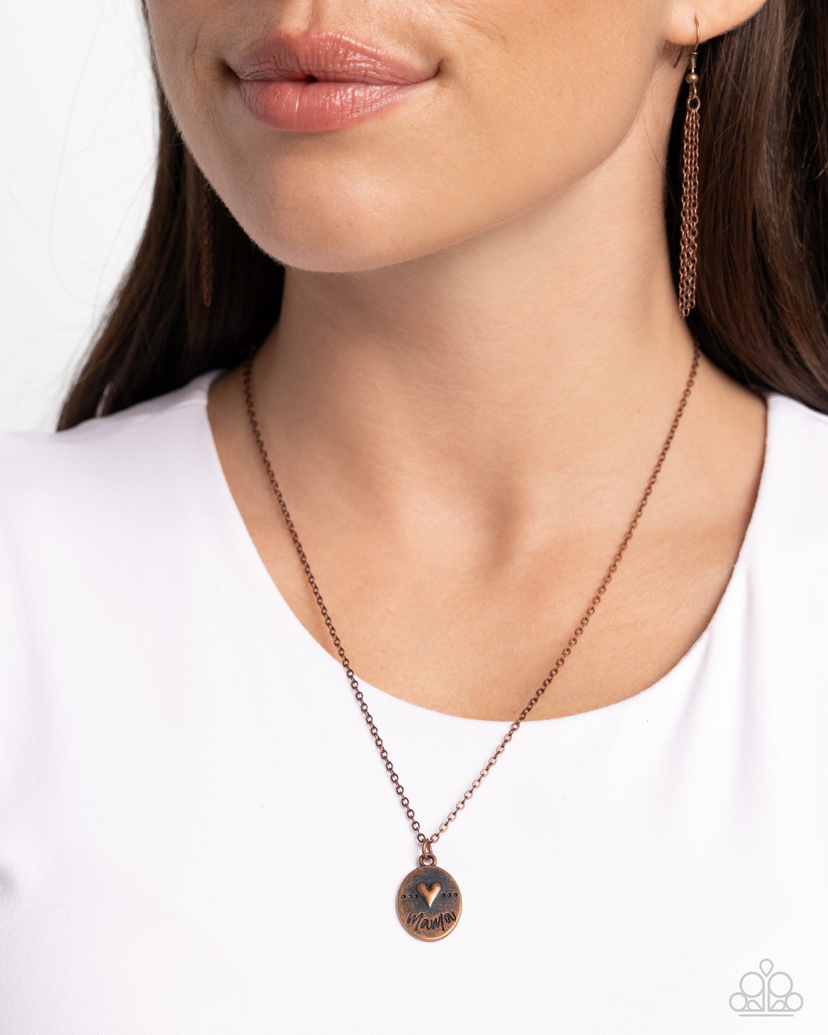 Embossed in a dainty copper heart, a dotted antiqued copper frame is stamped in the word, "Mama," creating a sentimental pendant below the collar. Features an adjustable clasp closure.