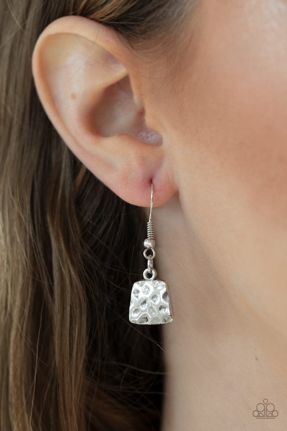 Brushed in an antiqued finish, hammered silver plates link below the collar, creating a bold crescent pendant for a statement-making look. Features an adjustable clasp closure.