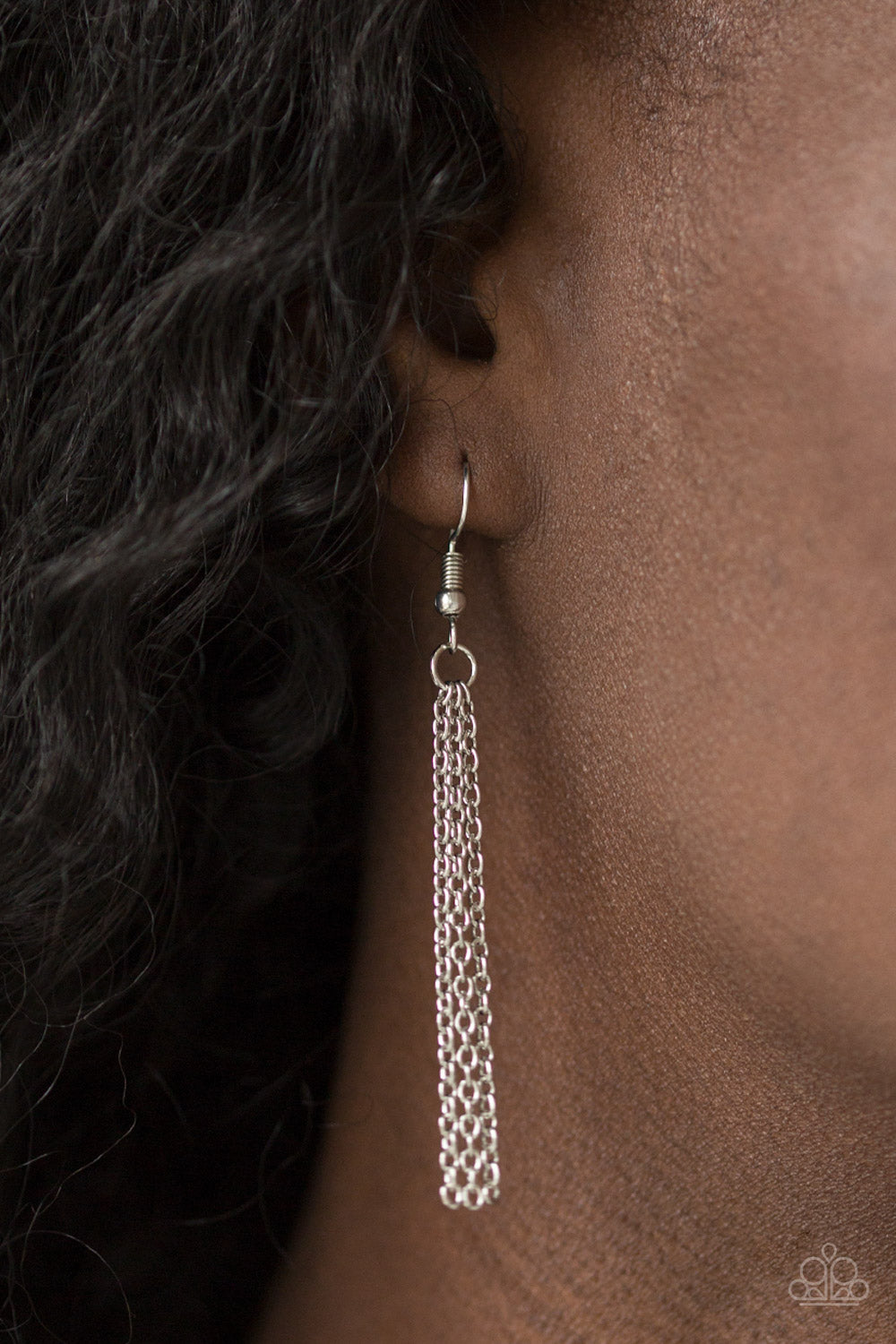 Shimmery silver filigree swirls across a shiny purple backdrop, coalescing into a colorful pendant. A glistening silver chain tassel swings from the bottom of the pendant for a whimsical finish. Features an adjustable clasp closure.