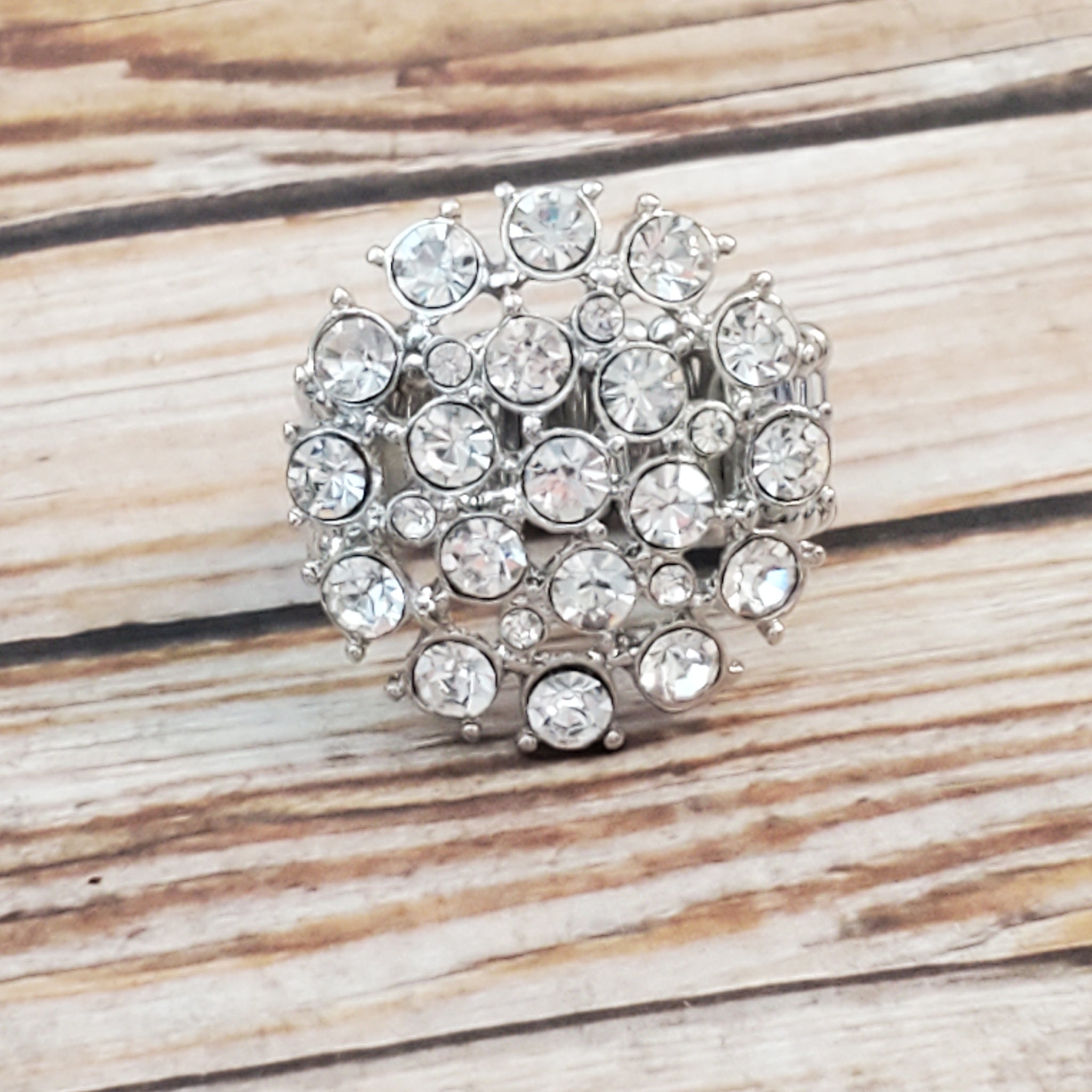 Featuring pronged silver fittings, an explosion of glassy white rhinestones sparkles atop the finger for a statement-making fashion. Features a stretchy band for a flexible fit.