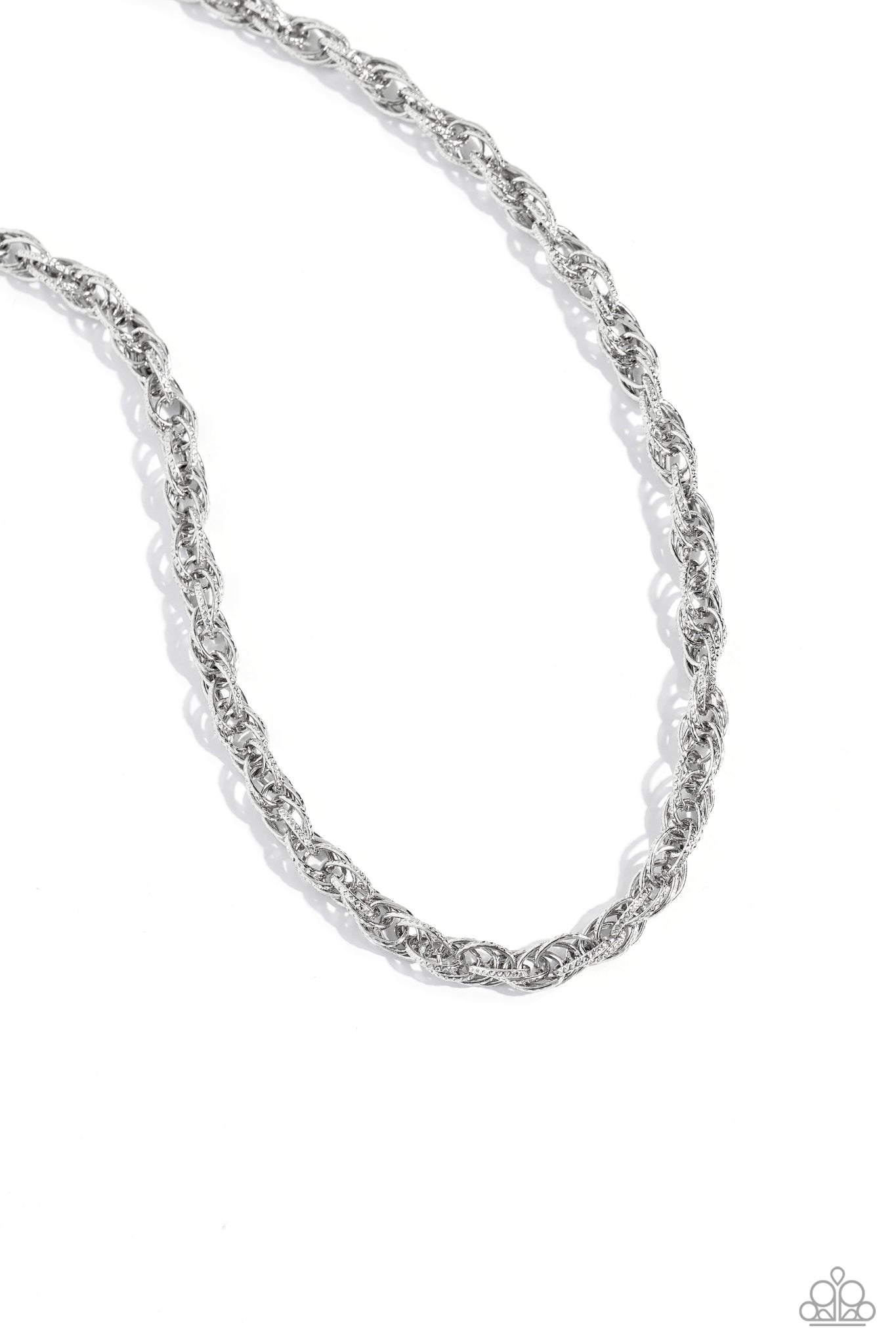 Rings of silver, each embroidered in tactile texture weave into an interconnected braided centerpiece for a monochromatic chic look. Features an adjustable clasp closure.